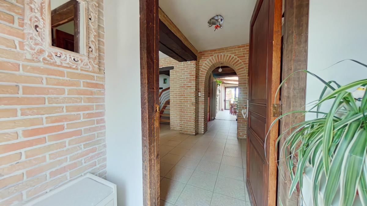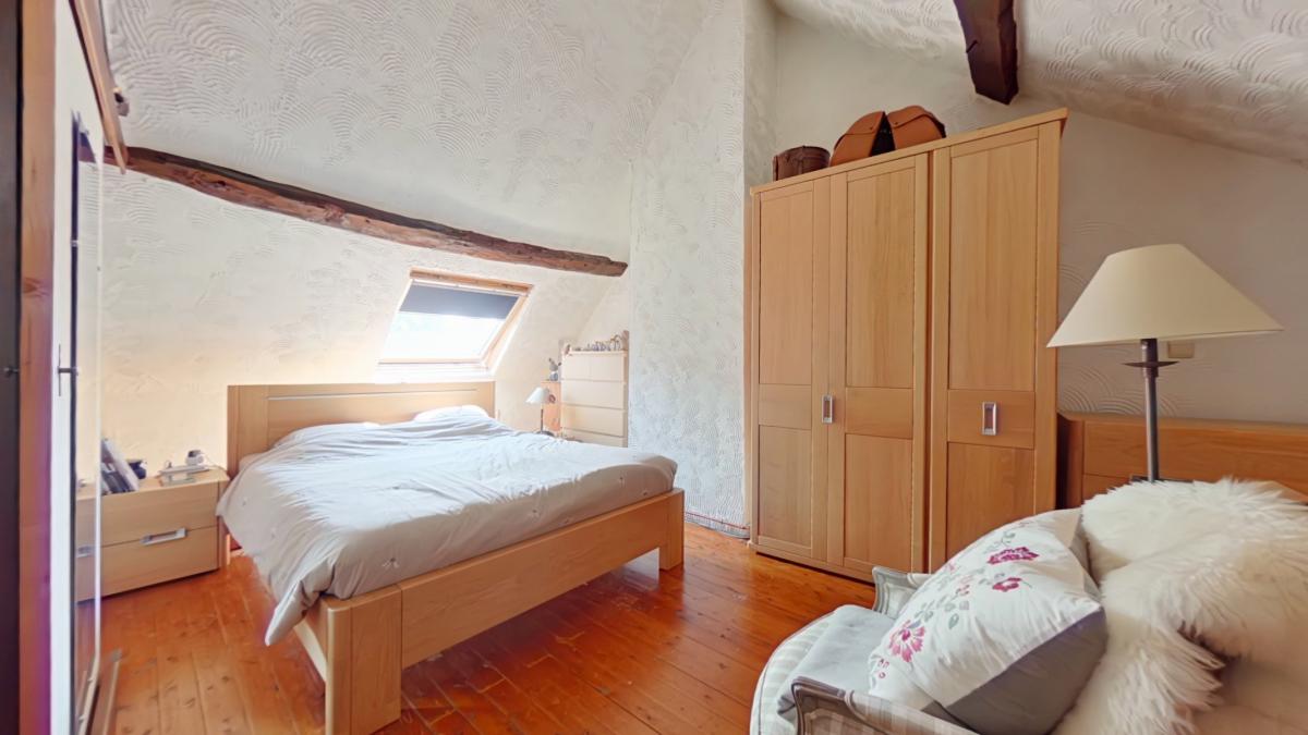 Un sas d'entrée de 1,75 m² (1,75 x 1) Une première pièce de 6,19 m² (2,27 x 2,72) Un salon de 13,32 m² (3,30 x 4,02) Un espace bureau avec escalier vers l'étage d'environ 8 m² (1,98 x 3,43) Un petit hall vers la salle à manger de 4,5 m² Une salle à manger de 11,25 m² (4,98 x 2,25) Une cuisine ouverte sur la salle à manger de 8 m² (2,89 x 2,65), équipée avec : -->évier avec égouttoir et mitigeur -->four ZANUSSI -->taque vitrocéramique -->hotte ZANUSSI ->lave-vaisselle très récent AEG -->meubles en bois Une salle de bain de 6,14 m² (3,02 x 2,03), équipée avec : -->WC --> meuble avec deux lavabos, miroir et colonne de rangement -->baignoire d'angle --> espace pour machine à laver ________________ ETAGE Une première chambre de 16,5 m² habitables (3,41 x 4,86), soit 23 m² au sol (6,77 x 3,41) Une deuxième chambre communicante de 9 m² habitables (1,97 x 4,54), soit 13,25 m² au sol (6,74 x 1,97), avec espace de rangement en mezzanine __________________ AUTRES __________________ Une belle terrasse de 25 m² Un jardin clôturé exposé nord-ouest avec chalet de rangement _________________ INFORMATIONS COMPLEMENTAIRES __________________ Parcelle cadastrée à Lessines, 2ᵉ division, section A, n° 567f Superficie du terrain : 2 ares 60 centiares Le bien est situé en zone d’habitat au plan de secteur Il n’est pas situé en zone inondable Banque de données de l’état des sols : rien à signaler Le bien est relié à l’égout Revenu cadastral non indexé total : 237 €