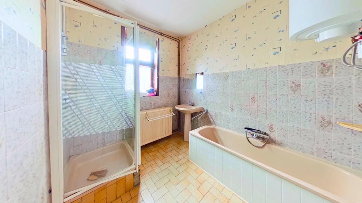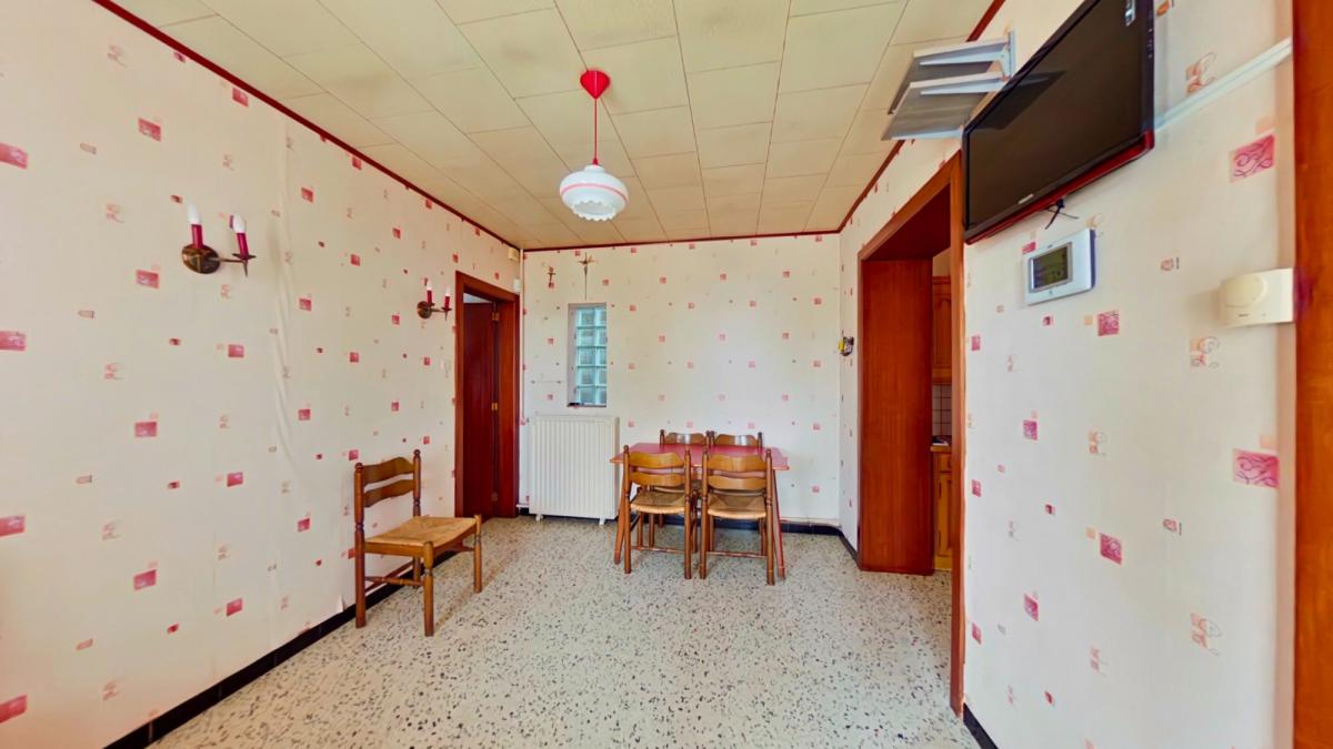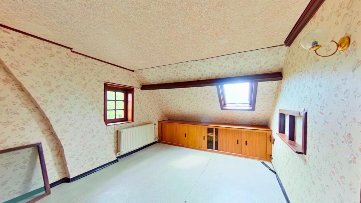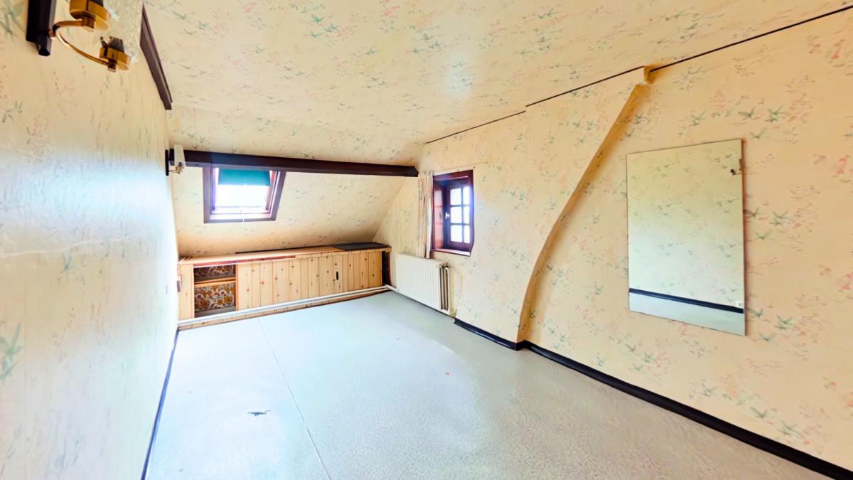 ÉTAGE Un premier grenier de 51,5m² au sol (5,65 x 9,11) Un second petit grenier adjacent aux chambres de 13m² au sol (2,30 x 5,83) Hall de nuit de 4,12m² (1,04 x 3,95) Une première chambre de 8,94m² (3,29 x 2,71) + 2,78m² (2,34 x 1,68) = 11,72m² Une seconde chambre de 8,09m² habitables (3,02 x 2,68) Une troisième chambre de 11,45m² habitables (2,78 x 4,12) EXTÉRIEUR : Un vaste jardin clôturé d’environ 1200m² exposé SUD avec vue sur la campagne environnante Une allée carrossable en gravier d’environ 80m² à gauche de la maison Un emplacement de parking supplémentaire privatif à droite de la maison. INFORMATIONS COMPLÉMENTAIRES GÉNÉRALITÉS : Parcelle cadastrée à FRASNES-LEZ-ANVAING, 1ʳᵉ division, section E, n° 362c (220m²) et 363c (1580m²) PEB : G Menuiseries extérieures : châssis bois double et simple vitrage, véranda aluminium simple vitrage Système d’alarme SLP CHAUFFAGE Central au mazout TOITURES : Non isolées ÉLECTRICITÉ EAU Prix : faire offre 250 000 EUR Renseignements et visites au 068333053 ou par mail à l’adresse info@yelo-immo.be (annonce non contractuelle) |