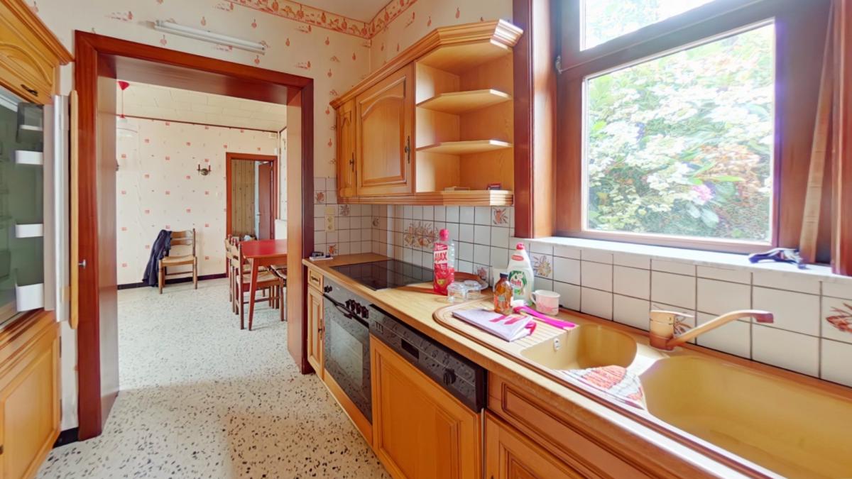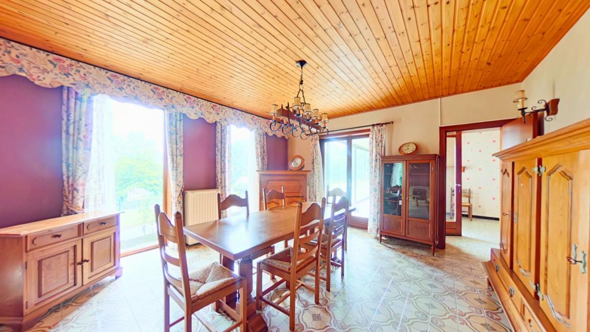 Vaste et belle villa à rénover sur les hauteurs de Frasnes-lez-Buissenal. Composition : SOUS-SOL Une cave de 5,57m² (2,39 x 2,33) REZ-DE-CHAUSSÉE Une véranda de 13,73m² (2,36 x 5,82) Une pièce d’entrée de 11,46m² (2,90 x 3,94) Une cuisine de 5,55m² (2,24 x 2,47) équipée avec : Un vaste et lumineux séjour de 41,62m² (4,49 x 9,25) Une buanderie de 11,53m² (2,86 x 4,03) Un garage de 18,31m² (3,01 x 6,07) Un couloir de 6,26m² Un WC de 1,17m² (1,50 x 0,78) Une salle de bain de 5,85m² (2,34 x 2,49) avec :