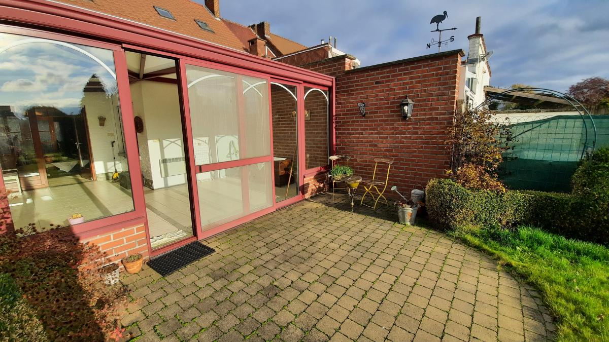 Visite virtuelle Composition: Rez-de-chaussée : - Hall d’entrée de 9 m² (escalier compris) - Espace vestiaire ou bureau de 6 m² - Spacieux séjour de 32,5 m² - Grande cuisine de 24 m² équipée (évier inox avec égouttoir, taque électrique, four, lave-vaisselle, frigo, hotte - Arrière-cuisine de 3 m² - WC de 2,5 m² avec lave-mains - Véranda de 26,5 m² donnant accès au jardin