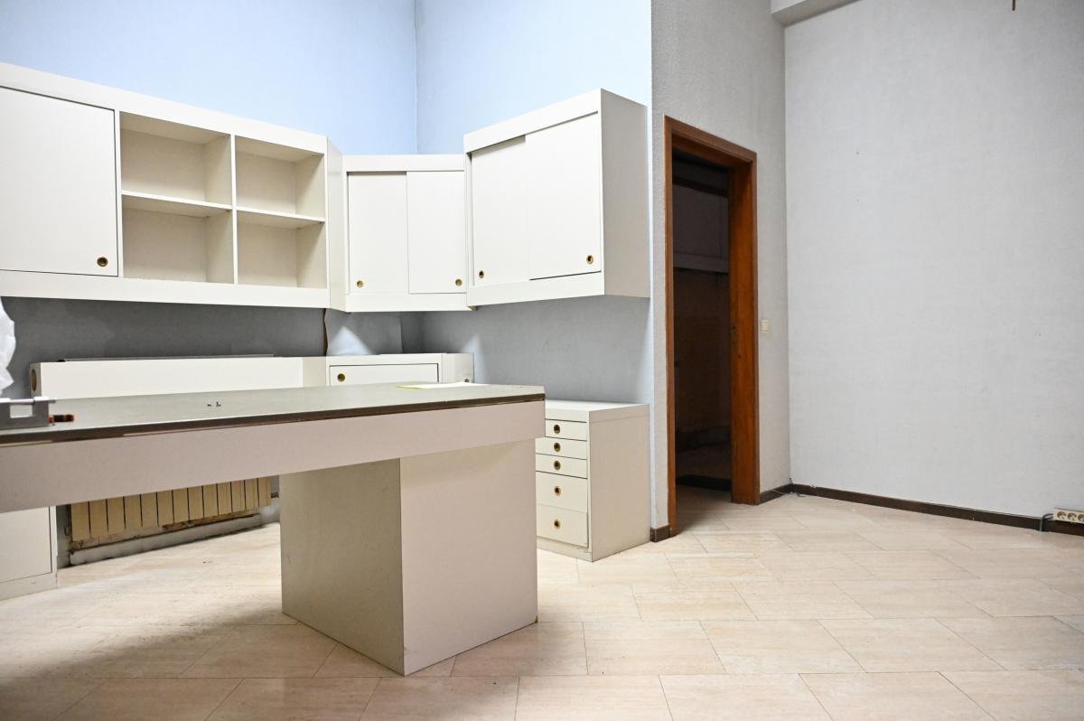 - Bureau central : 21,41 m² (4,67 x 4,58 m), petit sas vers la pièce arrière compris.