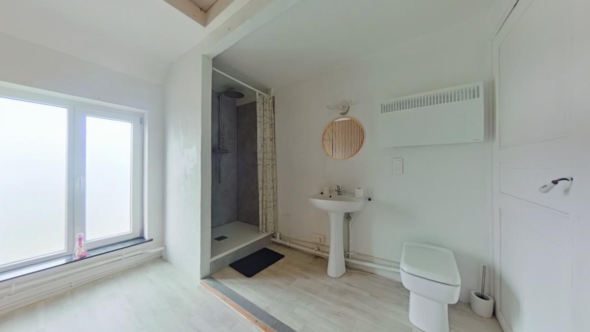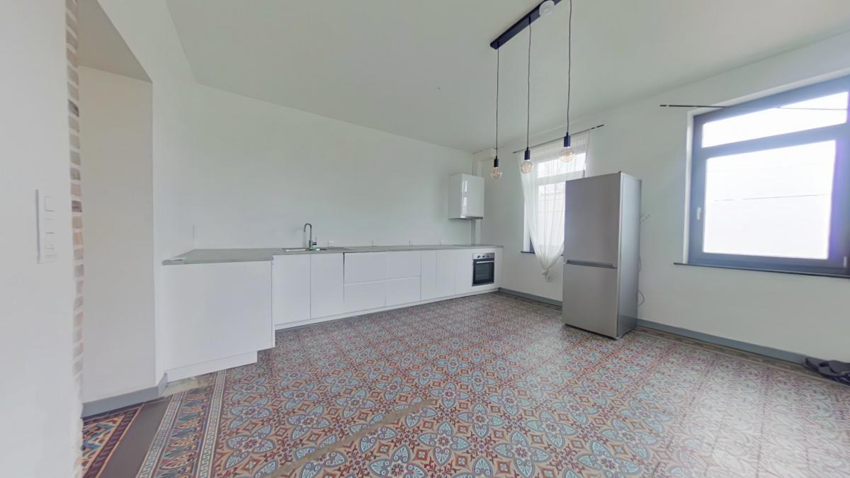 Cette jolie maison située sur la place du village, complètement rénovée vous séduira par son caractère et ses volumes. Elle possède un hall d'entrée, un séjour, une cuisine équipée, une cave, 3 chambres (19,8m2, 16,55m2 et 15,7m2 - 2 chambres sont en enfilade) et une salle de douche avec WC. Machine à laver à disposition, petit jardin clôturé. Radiateurs électriques. Loyer : 950€/mois. Bail d'un an renouvelable. Composition de la maison Hall d’entrée de 6,5 m² desservant l’escalier vers l’étage et l’accès à la cave Vaste séjour lumineux de 33 m² avec accès direct au jardin Cuisine équipée de 25 m² (four, taque de cuisson, hotte, évier, lave-vaisselle) Hall de nuit de 3,25 m² Salle de douche de 8,75 m² avec douche à l’italienne, lavabo et WC broyeur 3 chambres, dont 2 en enfilade : Chambre 1 : 19,8 m² (côté rue) Chambre 2 : 16,55 m² Chambre 3 : 15,7 m² Petit jardin clôturé Détails & équipements Connexion Proximus Châssis PVC double vitrage Compteur électrique intelligent Revêtements de sol : carrelage d’époque au rez-de-chaussée, parquet et vinyle à l’étage Chauffage via radiateurs électriques (pas de chaudière) Machine à laver mise à disposition Loyer 950€/mois bail d'un an renouvelable Pour toute demande d'information ou de visite, contactez nous au 068.333.053 ou info@yelo-immo.be |